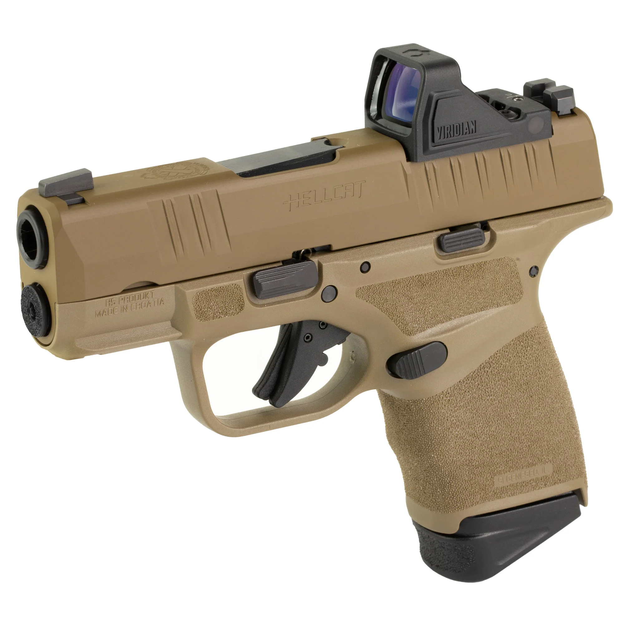 The Springfield Armory Hellcat OSP 9mm Desert FDE Gear Up Package is a high capacity micro compact 9mm and the next generation of defensive pistol from Springfield Armory.